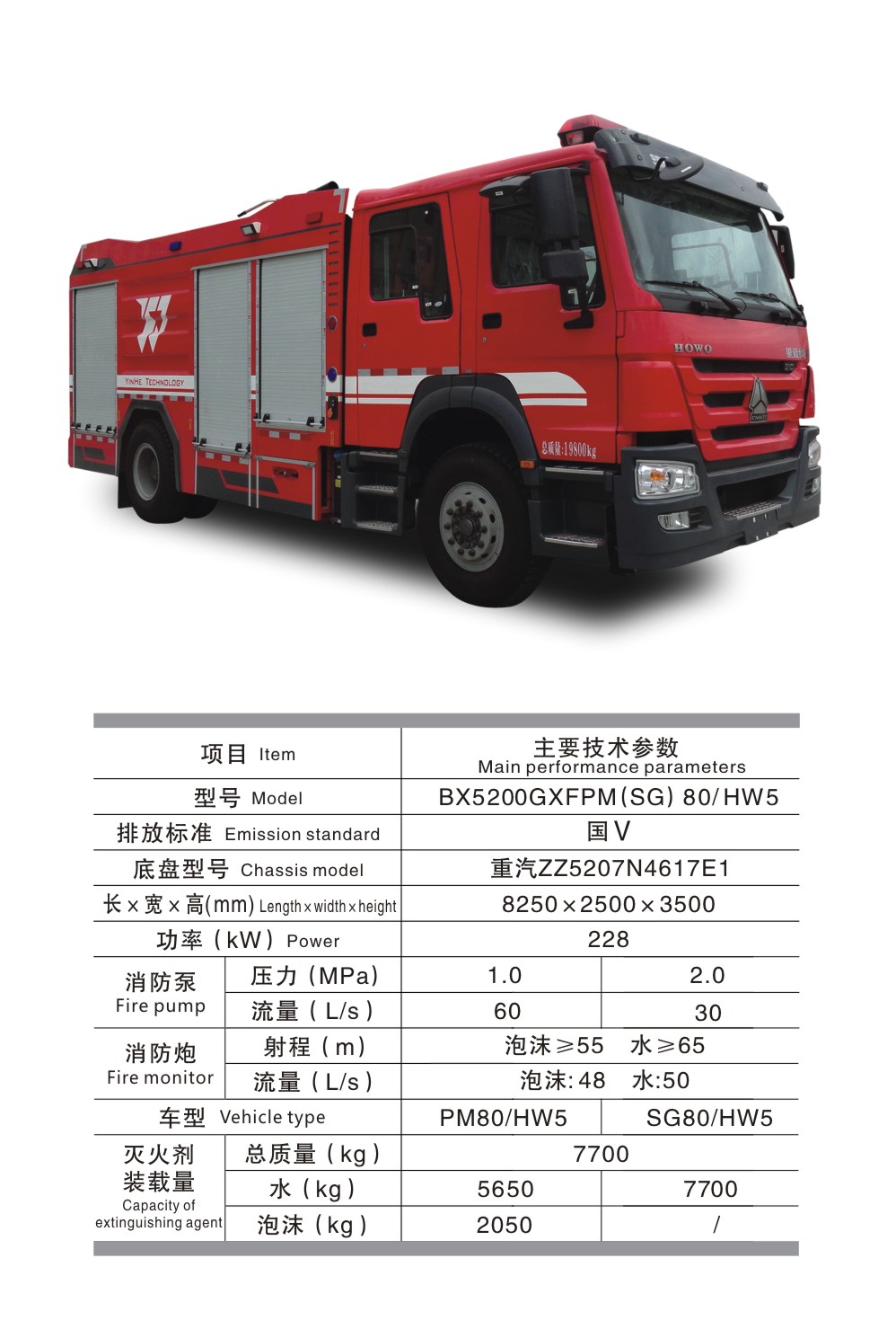 BX5200GXFPM(SG)80/HW5 水罐泡沫消防車