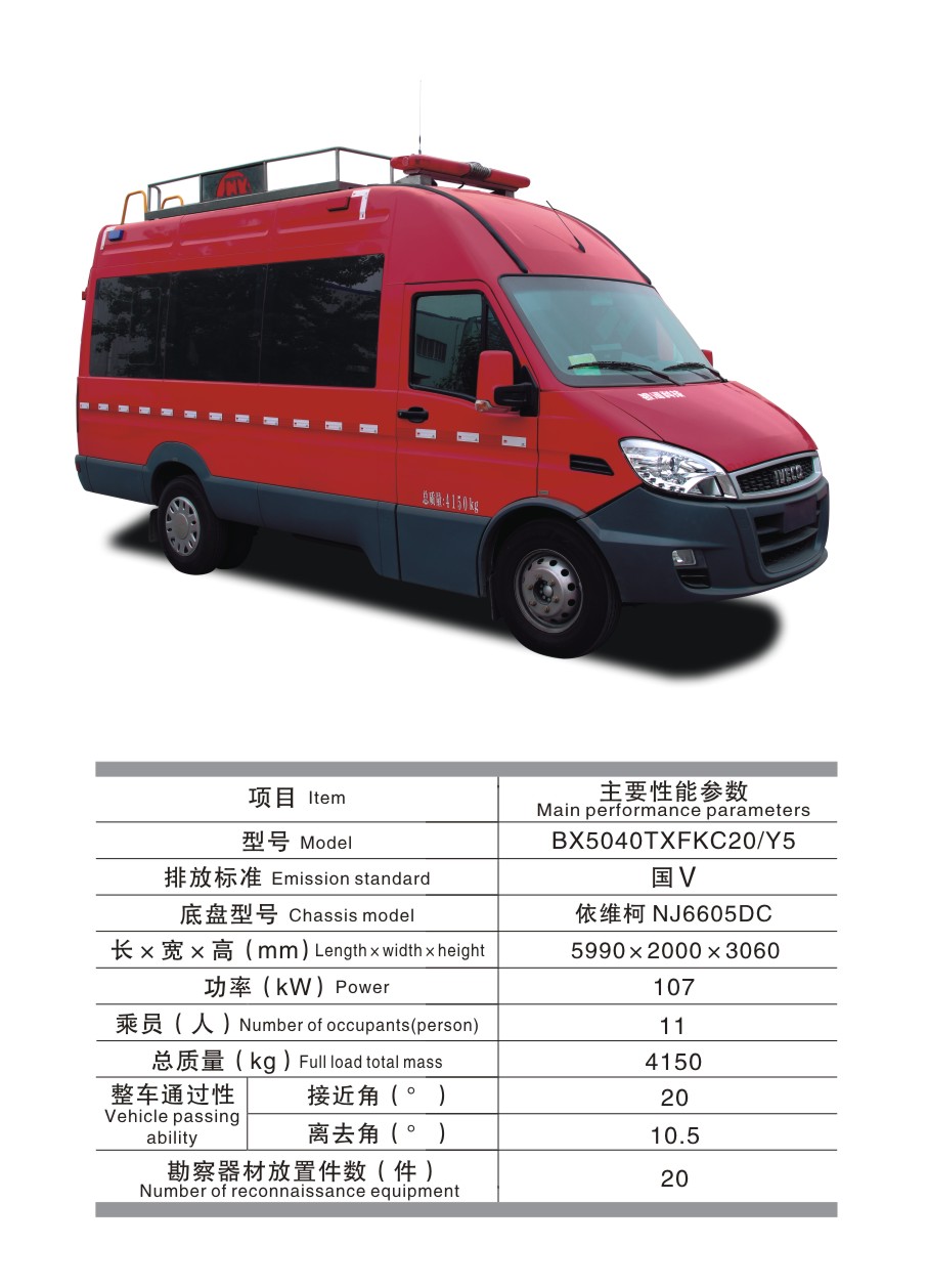 BX5040TXFKC20/Y5 勘察消防車