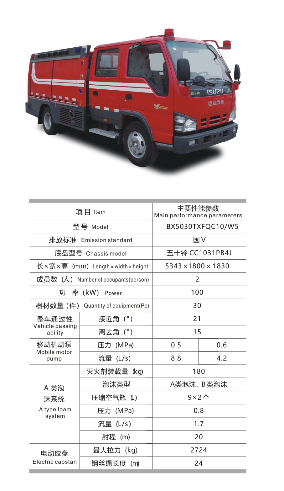 BX5030TXFQC10/W5 器材消防車