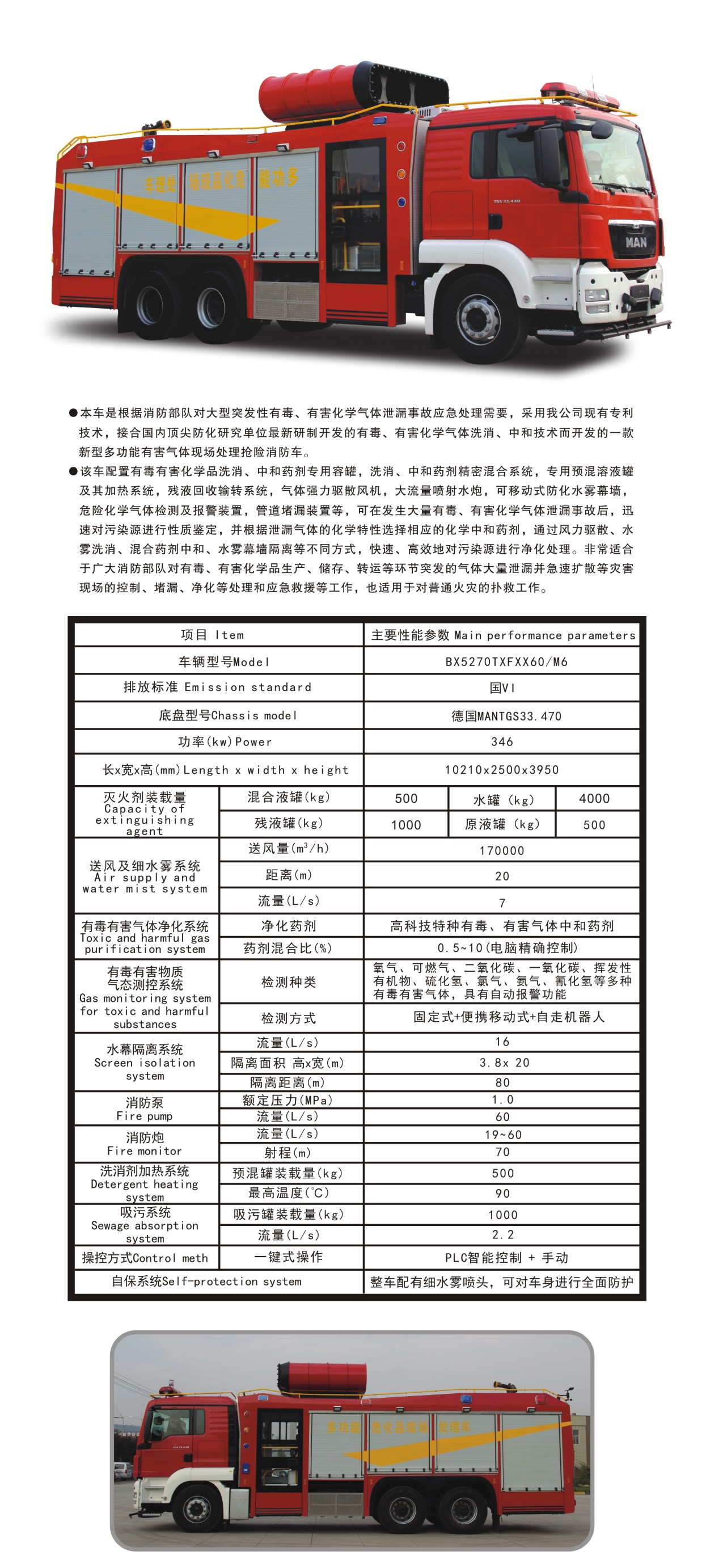 BX5270TXFXX60/M6多功能危化品現(xiàn)場(chǎng)處理消防車(chē)