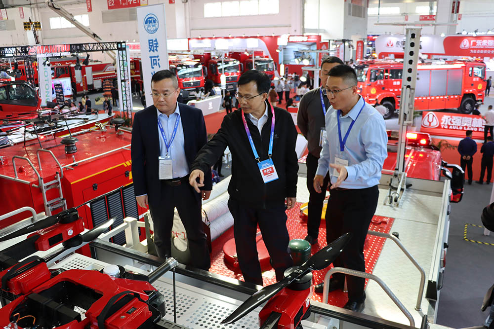 本屆展會(huì)上,陜西銀河消防科技裝備股份有限公司堅(jiān)實(shí)鍛造“全災(zāi)種、大應(yīng)急”綜合救援能力,專(zhuān)注產(chǎn)品研發(fā),不斷創(chuàng)新產(chǎn)品工藝,共推出應(yīng)急排風(fēng)掩護(hù)機(jī)器人、無(wú)人機(jī)壓縮空氣消防車(chē)、機(jī)場(chǎng)高壓噴霧消防車(chē)和搶險(xiǎn)救援消防車(chē)4款車(chē)型,在消防細(xì)分市場(chǎng)領(lǐng)域進(jìn)一步深耕。一個(gè)個(gè)先進(jìn)裝備吸引著觀眾目光,讓大家放緩腳步,駐足了解。中國(guó)消防救援學(xué)院院長(zhǎng)閆勝利對(duì)銀河消防公司產(chǎn)品給予高度贊賞和評(píng)價(jià),并邀請(qǐng)銀河消防公司于10月14日前往中國(guó)消防救援學(xué)院進(jìn)行無(wú)人機(jī)壓縮空氣消防車(chē)實(shí)戰(zhàn)演練。